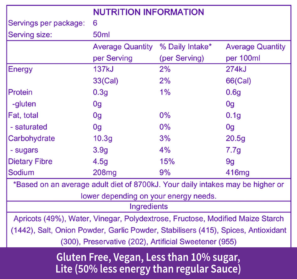 Lite Calorie Apricot Sauce 300 ml