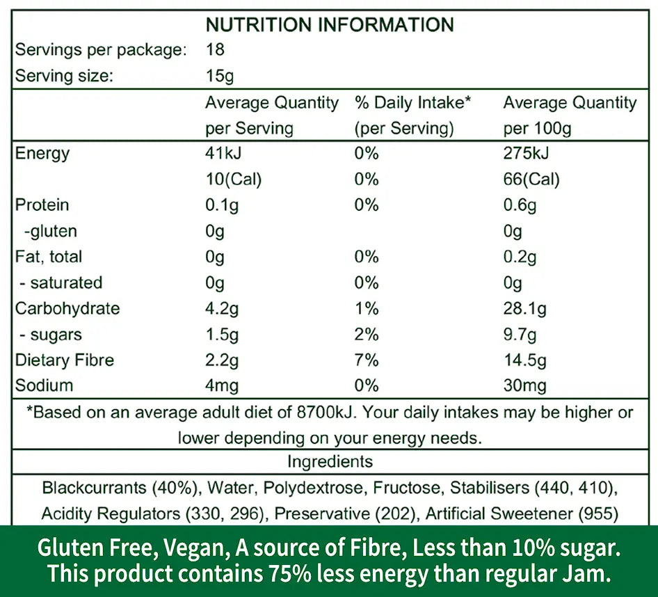 Gluten Free, less than 10% Sugar, Low Calorie, Vegan