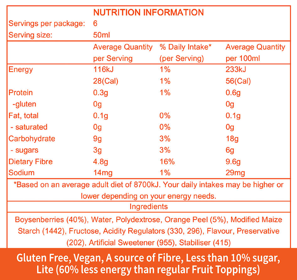Lite Calorie Boysenberry & Orange Topping 300ml