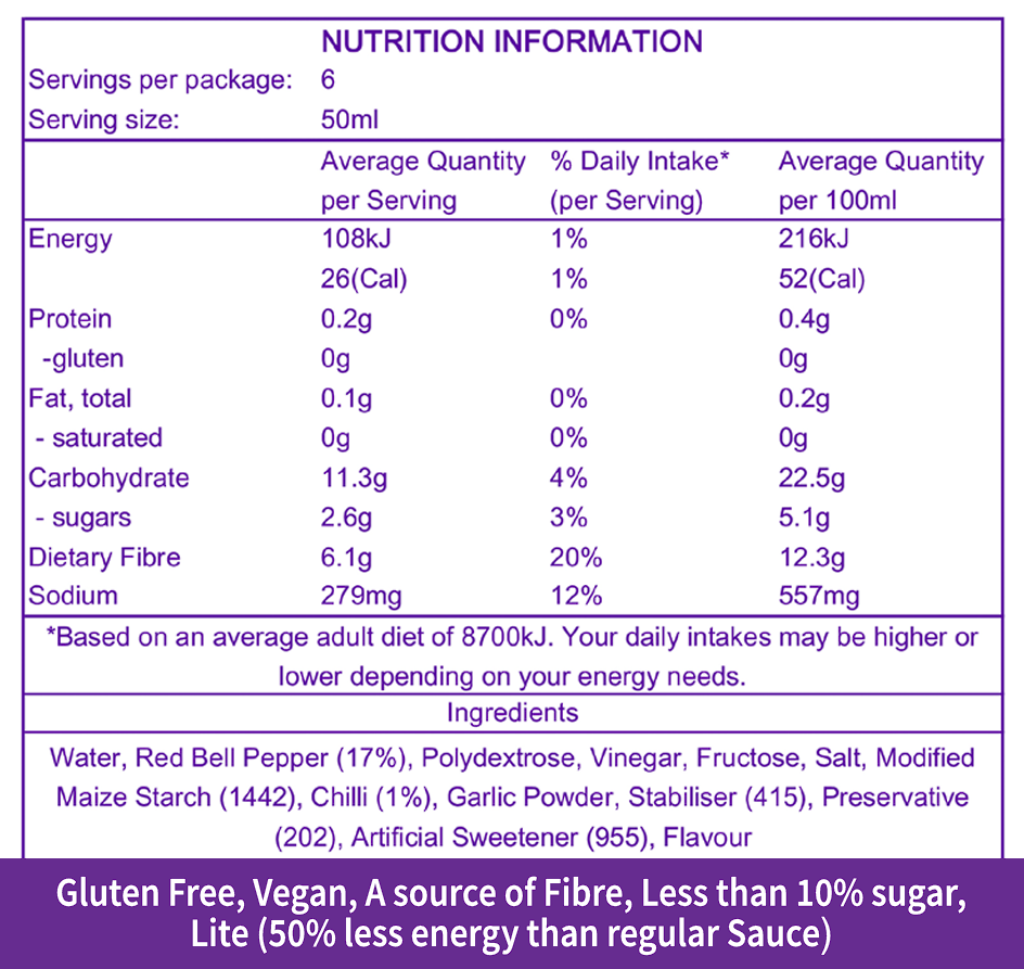 Lite Calorie Chilli Pepper Sauce 300 ml