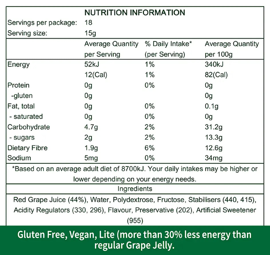 Lite Calorie Grape Jelly 280g