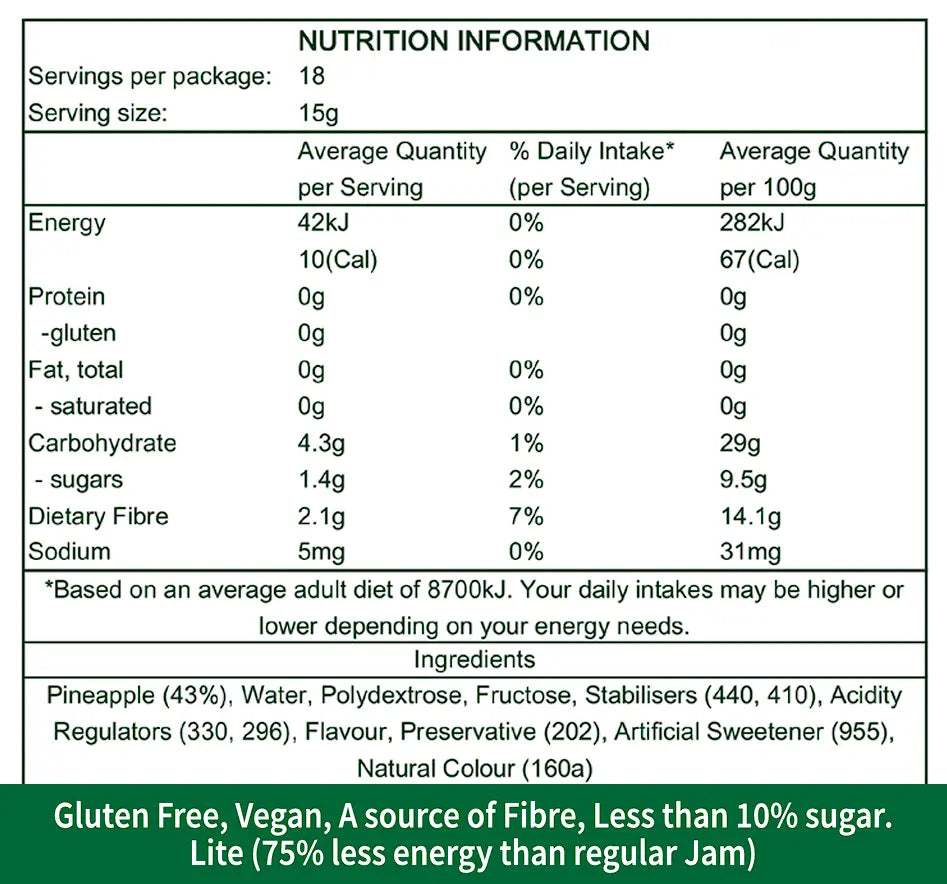 Gluten Free, less than 10% Sugar, Low Calorie, Vegan