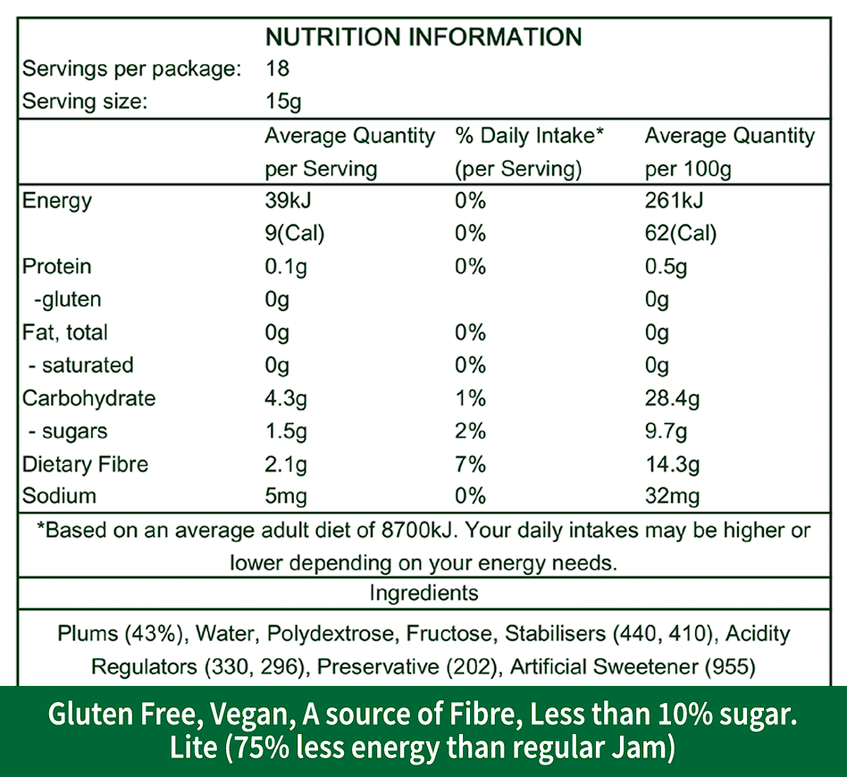 Gluten Free, less than 10% Sugar, Low Calorie, Vegan
